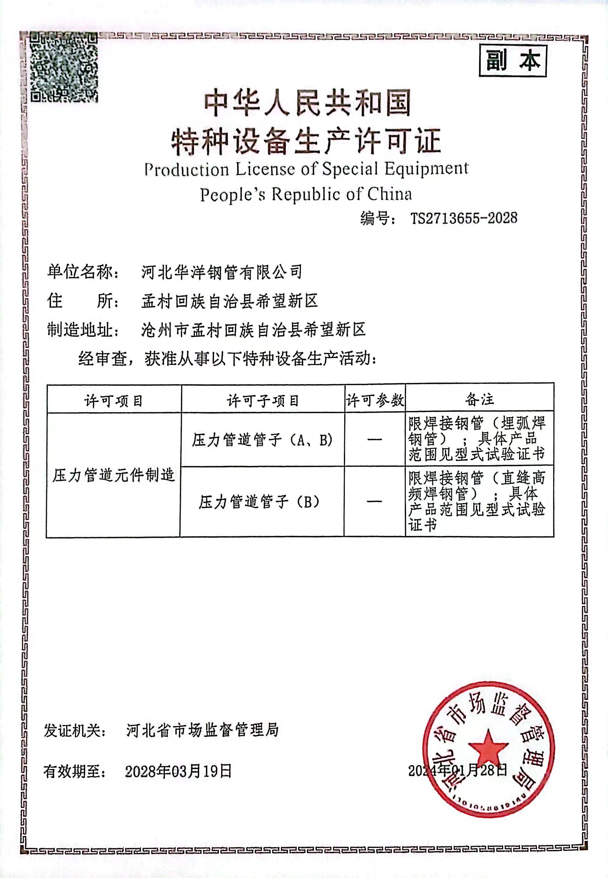 公司產(chǎn)品主要用于石油、天然氣、水、蒸汽、煤氣等高、中、低壓流體輸送管道及打樁、橋梁、建筑等結(jié)構(gòu)用鋼管,并承擔(dān)了國內(nèi)外標(biāo)志性工程建設(shè),華洋作為一個(gè)綜合型生產(chǎn)企業(yè),下設(shè)河北銘高貿(mào)易有限公司,以及在天津石家莊、山東、四川、廣州等地設(shè)立有3家分公司和5個(gè)辦事處。產(chǎn)品銷往各個(gè)城市井出口東南亞、中東、歐美等八十多個(gè)地區(qū),在國內(nèi)外享有很高的聲譽(yù)。