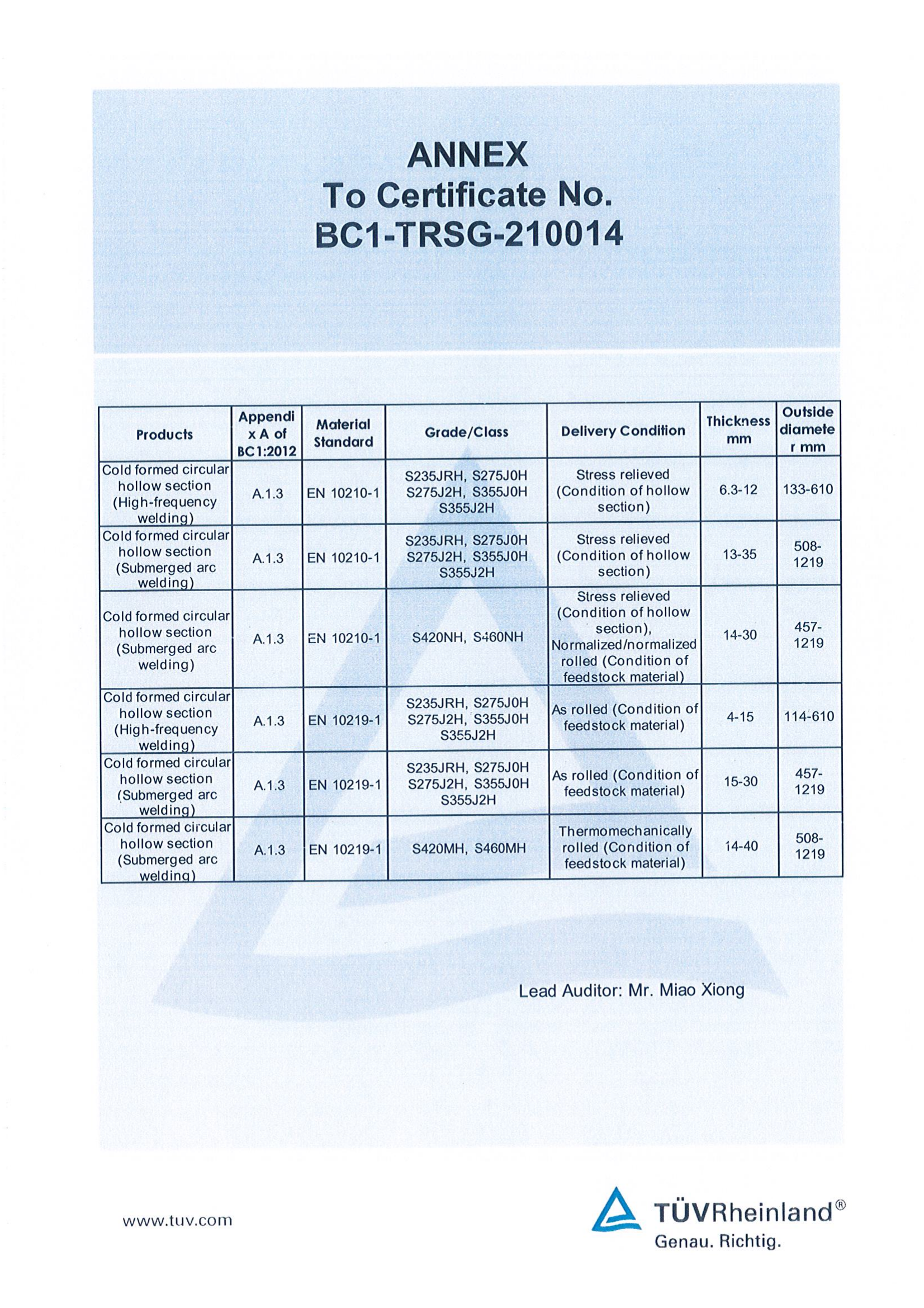 公司現(xiàn)有17條新型的自動(dòng)化鋼管生產(chǎn)線,包括Φ73-660.4高頻直縫焊鋼管生產(chǎn)線14條、Φ406.4-Φ1422.4直縫雙面埋弧焊鋼管生產(chǎn)線3條,并配備有一條防腐生產(chǎn)線,可進(jìn)行3PE、2PE、FBE、2PP、3PP防腐處理,同時(shí)還可提供鋼管深加工服務(wù)。公司擁有先進(jìn)的理化實(shí)驗(yàn)室,可承擔(dān)鋼管的各項(xiàng)物理及化學(xué)檢測(cè)與試驗(yàn)。公司先后取得了ISO9001質(zhì)量管理體系認(rèn)證、ISO14001環(huán)境管理體系認(rèn)證、ISO45001職業(yè)健康安全管理體系認(rèn)證、特種設(shè)備制造許可證、API5L和API2B認(rèn)證證書、歐盟CE認(rèn)證、俄羅斯GOST認(rèn)證、中海油入網(wǎng)證、安全生產(chǎn)標(biāo)準(zhǔn)化二級(jí)企業(yè)等標(biāo)準(zhǔn)質(zhì)量體系認(rèn)證。
