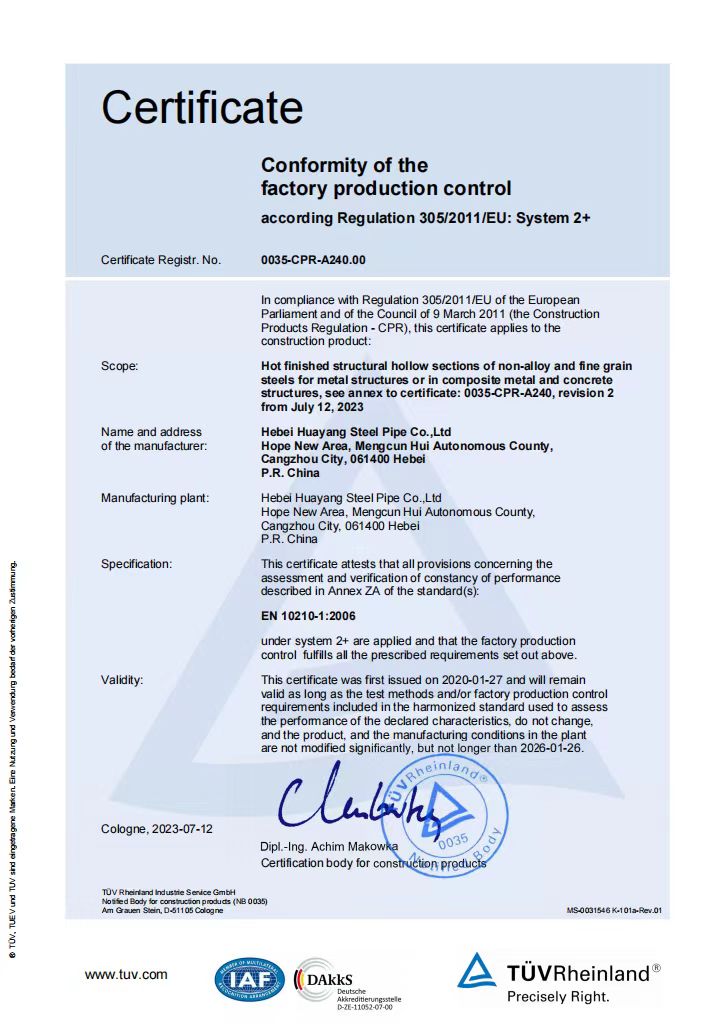 河北華洋鋼管有限公司公司創(chuàng)建于2005年,注冊(cè)資金5億元,公司占地面積1000余畝,固定資產(chǎn)12億元,年銷售收入近100億元,現(xiàn)有員工600余人。“華洋牌"高頻直焊鋼管被評(píng)為“河北省名牌產(chǎn)品”,年生產(chǎn)能力可達(dá)260萬噸,2024年河北華洋鋼管有限公司榮獲河北省百強(qiáng)民營企業(yè)(69位),河北省百強(qiáng)制造業(yè)(57位)榮譽(yù)稱號(hào)。